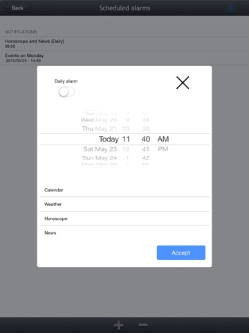It also allows you to schedule notifications, to be aware of your calendar, horoscope, news and weather entries at the time you choose to be!