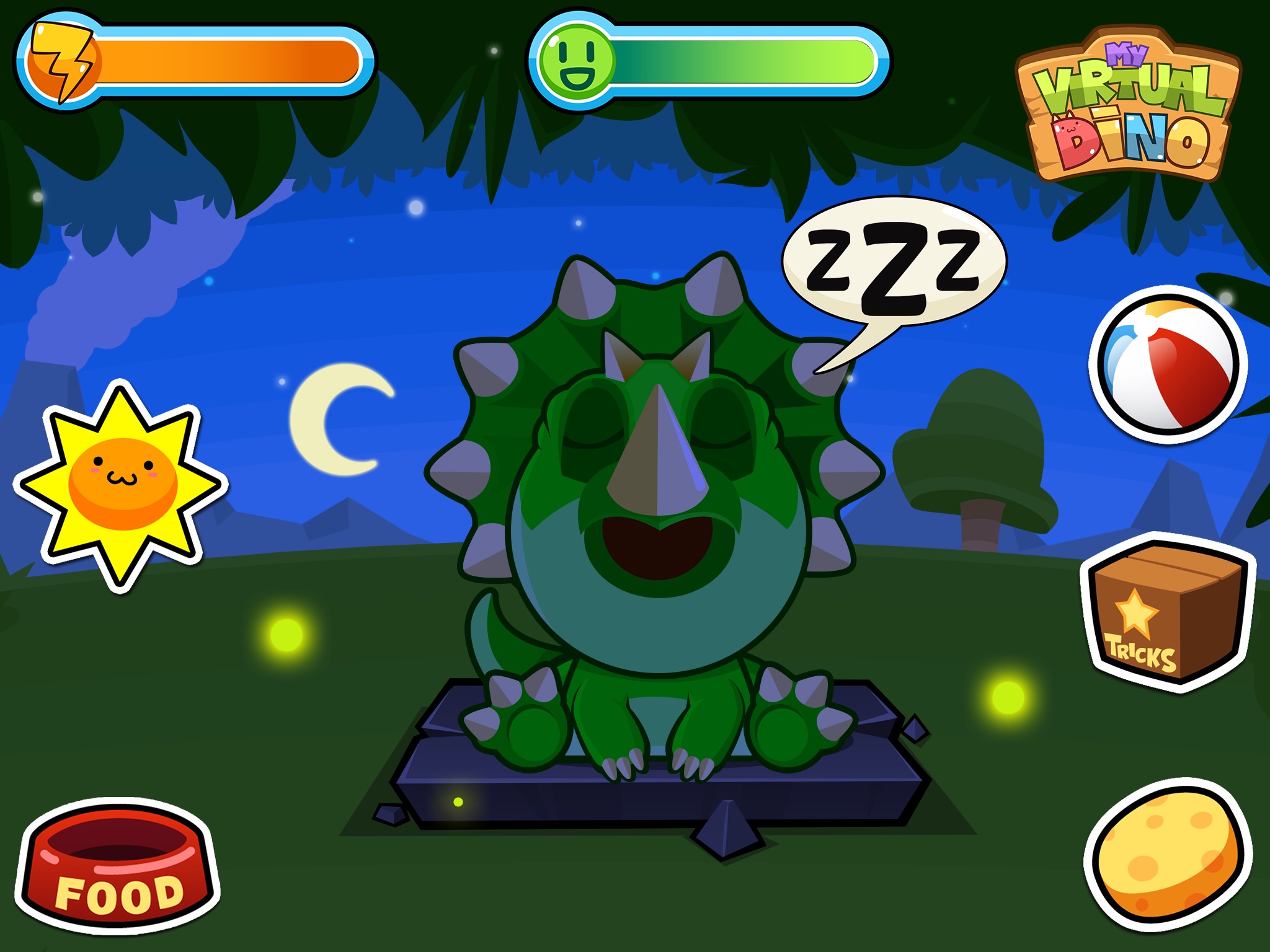 All the fun of owning a little dinosaur right in your hands! Raise, feed, teach, clean, train, perform numerous tricks and play exciting mini games with your adorable pet dinosaur. My Virtual Dino is a guarantee of fun for the children!