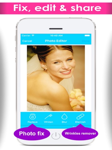 With this professional photo editor you can create unlimited photo effects, fix your photos, add text, special filters and share with your friends.
