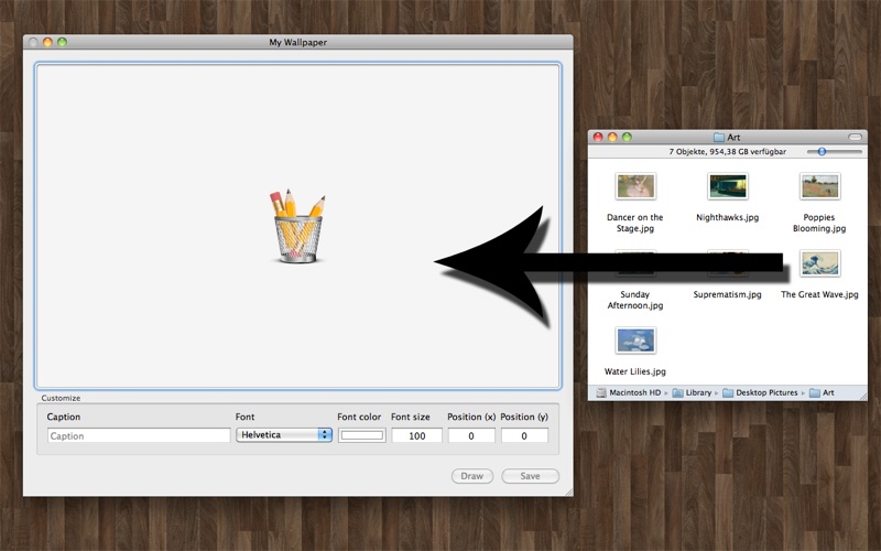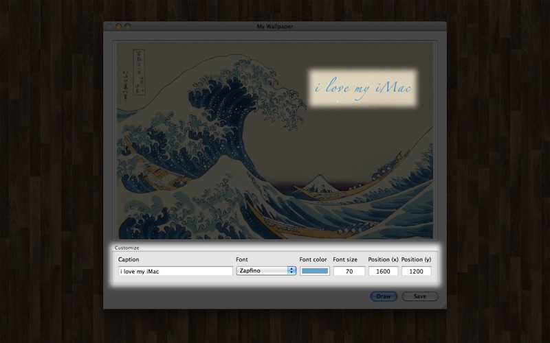 You love wallpapers but they always miss a personal touch? "My Wallpaper" allows you to modify your wallpaper and insert any text. Think of the name of your girlfriend, your cat or simply a quote by someone you like.