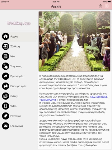 Η εφαρμογή είναι διαθέσιμη για Διακόσμηση Γαμήλιων Δεξιώσεων | Εταιρείες Οργάνωσης Γάμου | Σχεδιαστές Νυφικών | Καταστήματα Ειδών Γάμου | Καταστήματα Ειδών Βάπτισης | Βιοτεχνίες Ειδών Γάμου - Βάπτισης. κ.α.