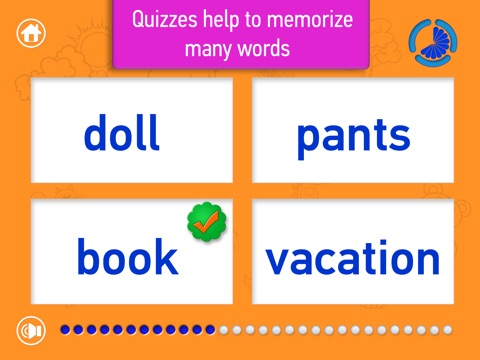 My Words app is an exciting educational game designed to help children recognize and read first words. Kids memorize new words and gradually learn to identify them by listening and repeating. All while having fun.