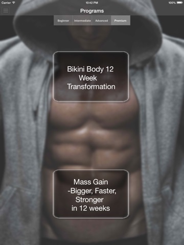 The specific programs range from the Bikini Body Transformation to Bigger, Faster, Stronger both ranging over a 12 week period. This app has something for everyone, whether youve never done a workout in your life or youve been working out for 20 years!