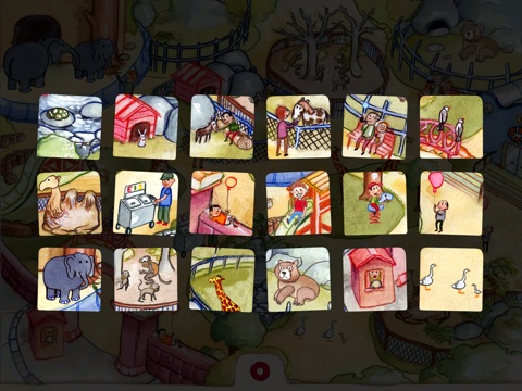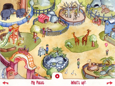 Three charming, colorful hand-drawn scenes feature interactive animals at the zoo, in the forest, and on the farm.