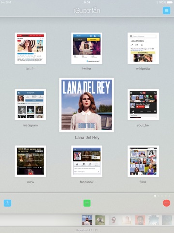 • browse & update twitter, facebook, youtube, instagram, flickr, wikipedia, last.fm, official websites, from one grid