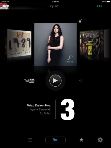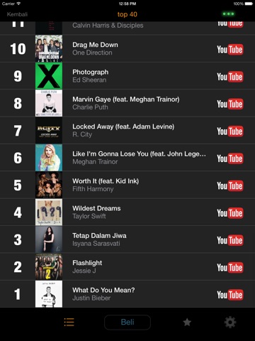 Ikuti Top 40, saksikan video musik YouTube, beli lagu dari iTunes & posting ke Twitter & Facebook.