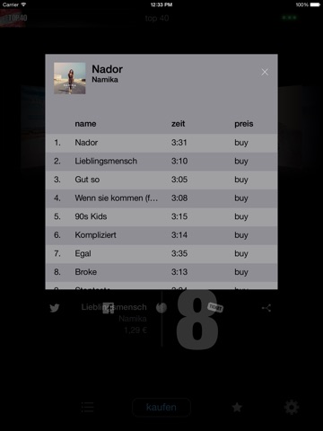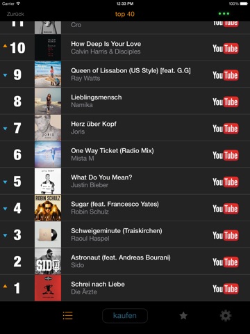 Bleib auf dem Laufenden, was heiss ist in den TOP 40, sieh dir YouTube Videos an, kaufe Songs von iTunes & poste auf Twitter & Facebook