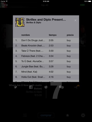 Manténgase al día con los Top 40, ver videos musicales de YouTube, comprar canciones de iTunes y compartir a través Twitter y Facebook