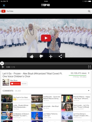 Watch YouTube music videos of the Top 40.