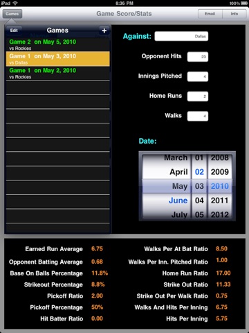 For Advance features buy Adv BaseB Pitch Stats from GoldStar App.