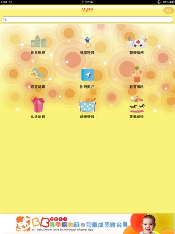 「MyBB Directory」- 全方位育兒資訊搜尋器(中國香港區版本)為用戶搜羅最齊全最詳盡的育兒資料! 當中包含了醫療服務、教育資訊、產前錦囊、生活消費、著數情報及親子活動等資料,讓智能手機用戶可以免費下載,隨時隨地皆可透過手機方便地得到最快最新資訊。