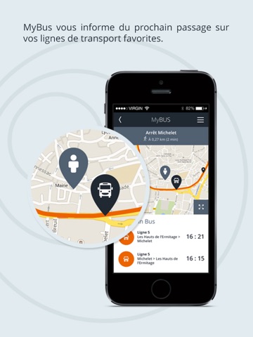 ► MyBus gives you access to the map of your public transport network and you are geolocates.