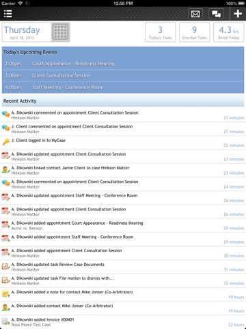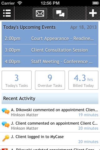 Whether in the office, in court, or somewhere in between, the MyCase Mobile App provides attorneys with the ability to manage their practice efficiently, take advantage of every moment of their day, and keep up-to-date with critical changes to their caseload.