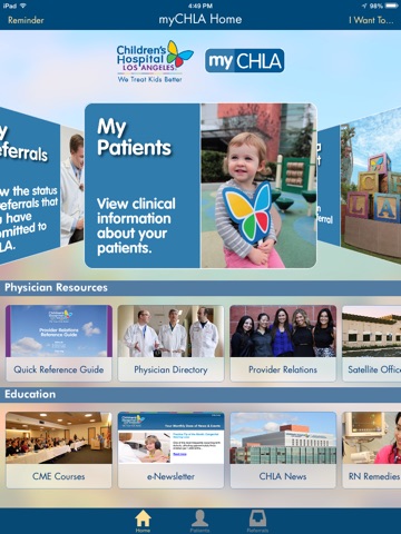 This application is designed for physicians referring patients to Children’s Hospital Los Angeles (CHLA) and is intended to function as a mobile complement to the access provided via the web portal at www.myCHLA.org.