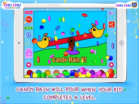 > A delightful “Candy Rain” animation sequence that activates when a level is completed, which gives your child a sense of accomplishment and keeps them engaged.