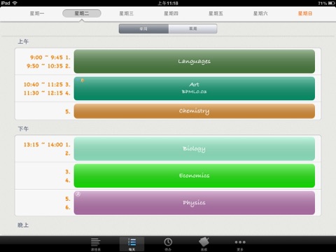 つかいにくいです なんかバグって一部中国語だし、午後と午前でそれぞれ第一節ってなってるし、日本の時間割じゃないみたいです