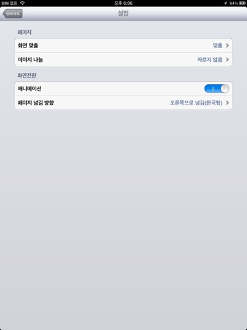 - 설정에 따라서 일본 만화 스타일로 넘기기를 지원한다