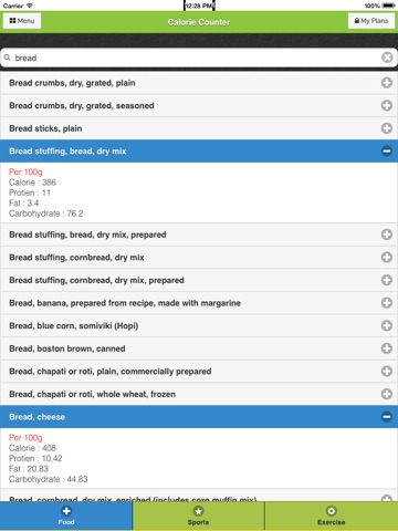 1.Calorie counter (includes protein,fat,carbohydrate check). over 75,000 database