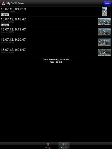 Direct access to the recorded files can be accessed through the iTunes, which allows you to copy application files from shared folders. Also MyDVR allows to copy a video into the photo album and then you may send it by e-mail or upload to YouTube.