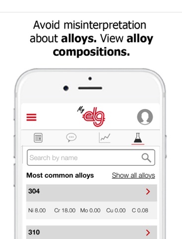 It can be hard to find a specific alloy and can be confusing communicating about these specific alloys. MyELG makes this easy through searching by alloy name and which elements are part of these metal compositions.