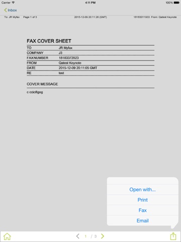greate app, simple, yet does what i need it. here is a few pointer of additional functionality: be able to send the received fax to another fax #, and/or and email recipient. be able to add notes to a fax that would be seen in the apps inbox of faxes if you can make this happen, awesome! keep it up, myfax is greate!