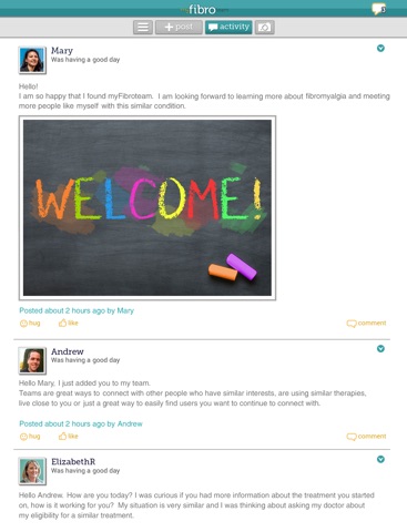 MyFibroTeam is a social network and support group for those living with fibromyalgia. Get the emotional support you need from others like you, get practical tips to manage your life with fibromyalgia, and insights about treatment or therapies. MyFibroTeam is the only social network where you can truly connect, make real friendships, and share daily ups and downs in a judgment-free place.