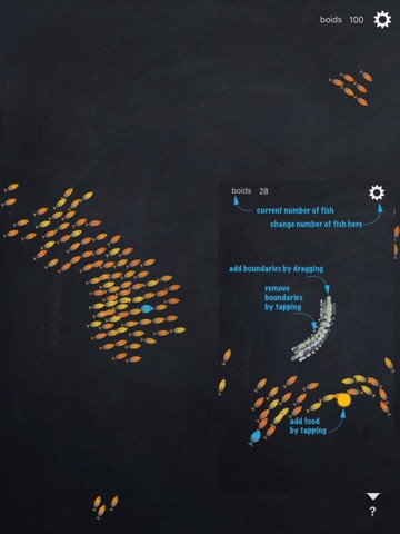 you can change the number of fishes and delete obstacles if you want, or just feed them to see how they react.