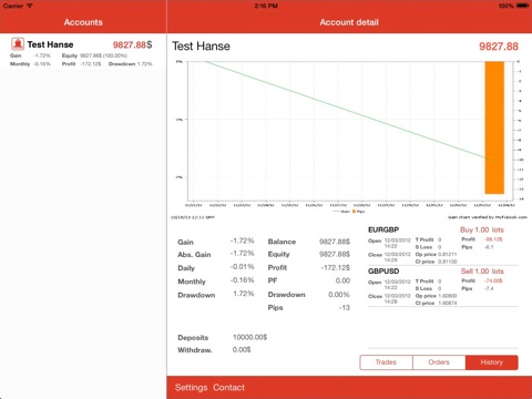 Приложение не несет никакой информационной ценности - забирает с myfxbook картинку с графиком по счету и выводит на экран. Счета нельзя группировать, анализировать или, хотя бы, zoom-ировать: просто куча счетов в списке и картинка к нему.