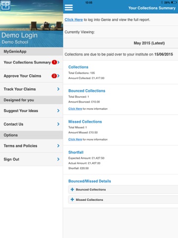 Schools and colleges can view monthly statements on their direct debit collections and receive instant in-app notifications if a contribution collection bounces. Claims placed by students or parents can be approved in seconds and can be traced through each step of the claims process using the claims tracking feature.