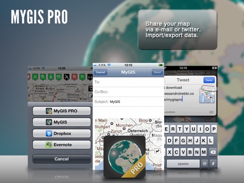 MyGIS has the ability to save a MyGIS.kmz file that can be opened in other applications (for example, dropbox, to be able to save it). By also selecting a file with the kmzMyGIS extension, you can choose to open it with MyGIS, in which case the contents of the file replace the map with the contents.