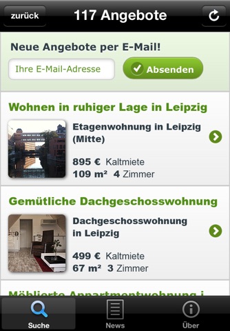 Bei mir in der Ecke habe ich viele schicke Wohnungen gefunden, zudem mit kurzen Ladezeiten der App. Die Sucheingabe ist sehr einfach und gut verständlich.