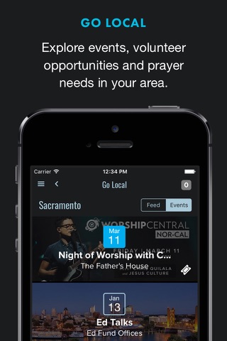 Go Local: Go Local allows you to see events, prayer needs and volunteer opportunities in your area.