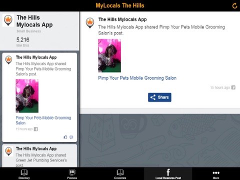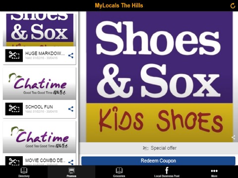 Information on Deals, Promotions, and Sales in the area, as well as Local Businesses directory like restaurants, beauty salons, and may more.. User can also check out "Whats on" in the area for things like Events and shows.