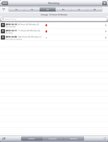 CHART. Watch your progress change over time using weekly, monthly and yearly summary line & bar charts. Toggle between lines and bar charts. You’ll see entry averages and totals too. Email your data in multiple report format csv, html and image to anyone you’d like.