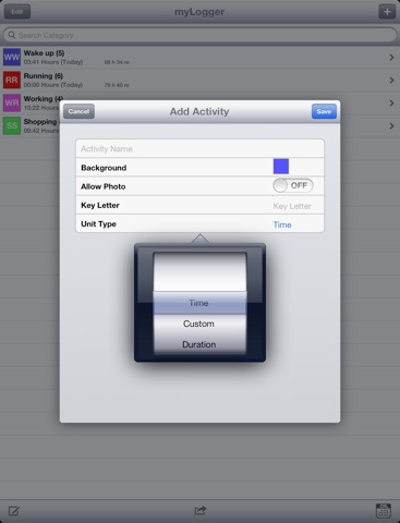 • Fitness and Exercise: Track your workout routines and how long you spend at the gym. Track any activity such as walking, jogging, rowing, cycling, yoga or meditation. View weekly, monthly and yearly results by simply switch by a single tap and plan future workouts by adding notes.