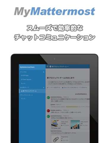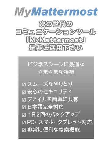 MyMattermostは、チームの情報共有をリアルタイムで行うことができるビジネス用チャットサービスです。