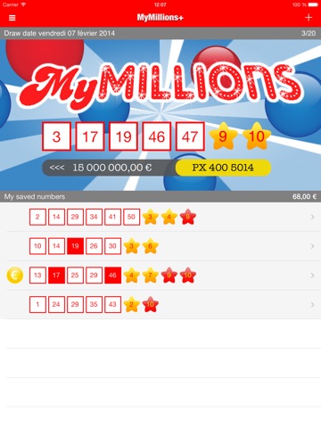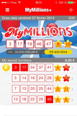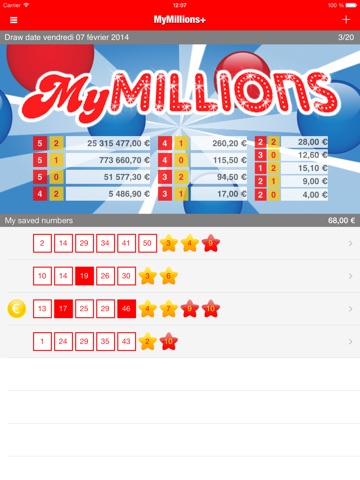 Save your numbers, check easily if you are lucky with MyMillions and see the results of the last 20 draws.
