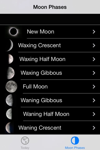 MyMoonPhases is a great app to help people learn the moon phases. This app shows the current moon phase and a description of each phase so that the user can get familiar with them. It is great for studying for tests on the moon, just whip out your iPhone or iPod touch and all of the info you need to know is there!