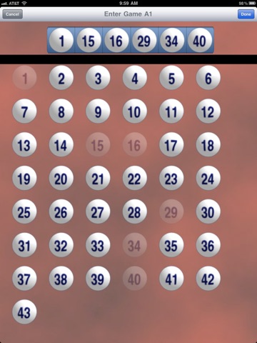 - Simply enter your numbers from the actual lottery ticket by just touching the balls on the screen.