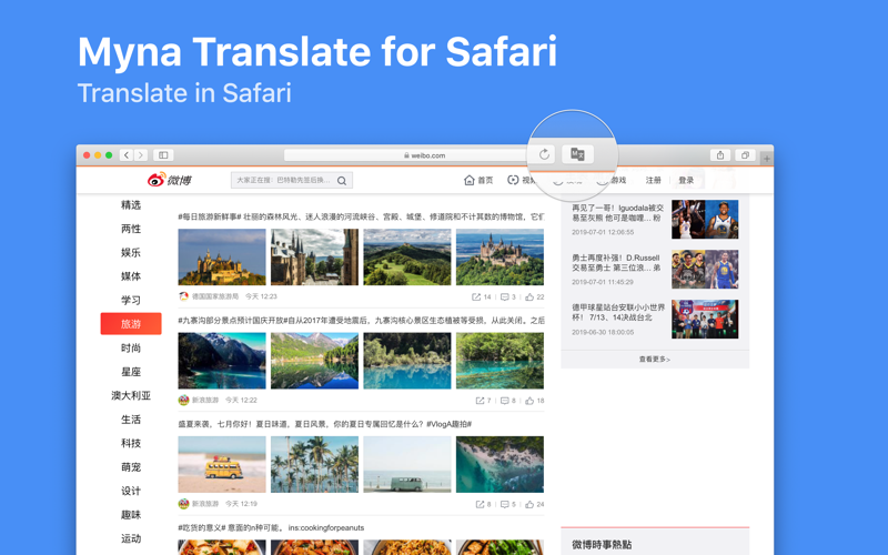 Myna Translate for Safari is the most advanced Safari extension for Google Translate on your Mac. Its perfect for quickly translating websites.