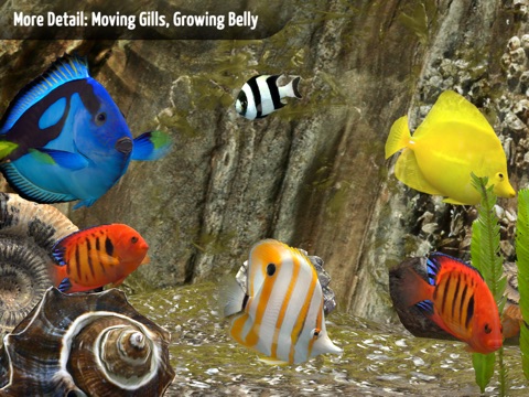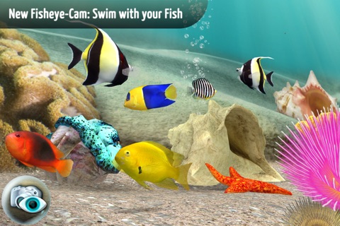 Three dynamic cameras let you choose your view: The fish camera allows you to zoom in on a fish, automatically following its movements, and the auto camera focuses on points of interest while you relax. The new fisheye-cam lets you dive into the aquarium to follow your fish. Use common touchscreen gestures to control the camera, sound, and to easily choose fish for your aquarium.