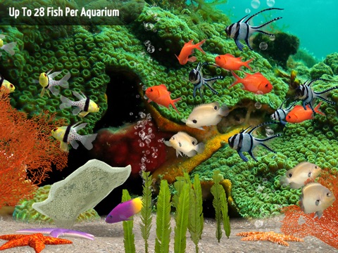 - Customize five aquariums, selecting backgrounds, accessories, and the perfect mixture of species
