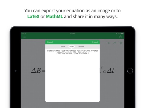 La conversion Latex est top ! Mais des que léquation prend de la place, les puissances passent en facteur ! Ce qui force a supprimer et remettre ! Dans lattente dune MAJ ! Sinon, bonne appli !