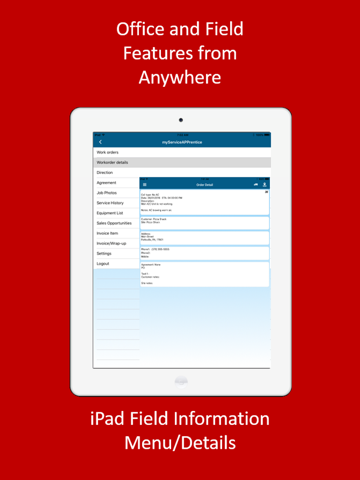 Download to your iPhone, iPad or iTouch today and see how myServiceAPPrentice can work for you. Field functionality requires registering and setting up your FREE office services. If you do not need office and dispatch capabilities please use myServiceJOBS.