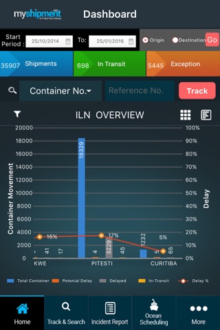 Its a Tracking solution for Automobile Company, Buyer and customers. It provides Dashboard with 3 levels (Carrier, ILN and FLOW) drill-down analytics. Using this application, you can manage your incident and analyse the shipping line performance.