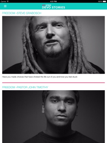 Spending quality time getting to know someone is the key to any real and healthy relationship. This is especially true as it pertains to your relationship with God. This is where My Step comes in. My Step is providing a devotional app that will give people the opportunity to explore their faith more deeply, experience God in new and creative ways and, best of all, be challenged and inspired to share the love of God with others. The daily devotional app will encourage and enable users to put aside time to spend with God every day. You will have the opportunity to hear from hundreds of different people from all walks of life; you will see Scripture come to life through the lives and experiences of others; and you will be challenged to live your life in all the freedom and joy that can only come from a real and personal relationship with God. So what are you waiting for? Download the app and begin today!