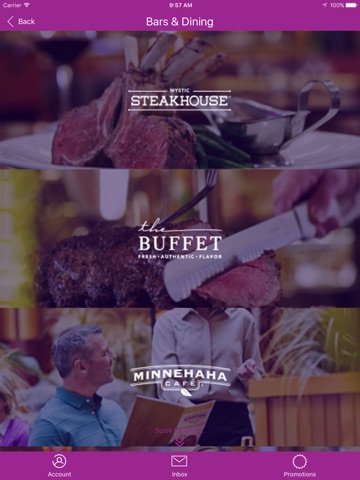 • View gaming promotions including prize drawings, gift giveaways, blackjack and slot tournaments, bingo specials and more