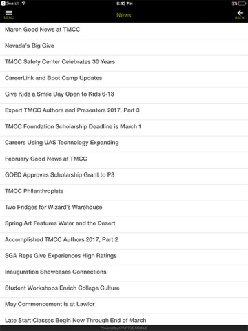 MyTMCC mobile app helps you stay connected to Truckee Meadows Community College wherever you are. Get access to course information and maps, as well as find people in the TMCC Employee Directory.