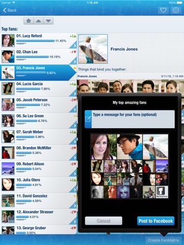 • FANMATRIX: generate an awesome collage with the pics of your top 20 fans, your biggest fans will have the biggest pics.
