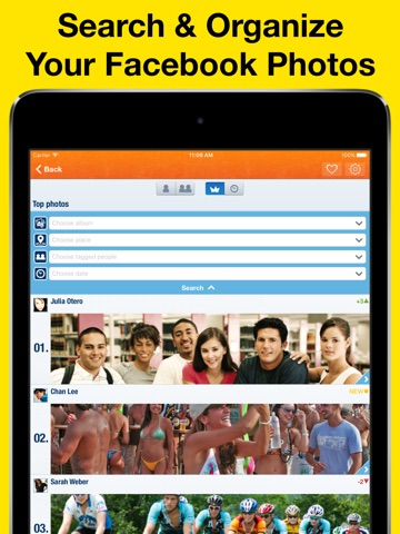 • RANKING CHART: browse your photos from Facebook, sorted by “most popular/latest.”